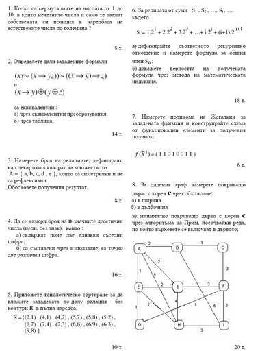 Index of /Бакалавърски програми/Компютърни науки/1 семестър/Дискретни структури/Контролни/Контролнo, Условия/